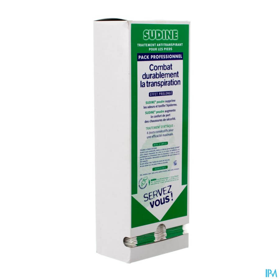 Durant 6 jours consécutifs, mettre le contenu d'un sachet de SUDINE® Poudre dans chaque chaussette (en coton ou en laine de préférence au synthétique) ou directement dans la chaussure, si vous ne portez pas de chaussettes.